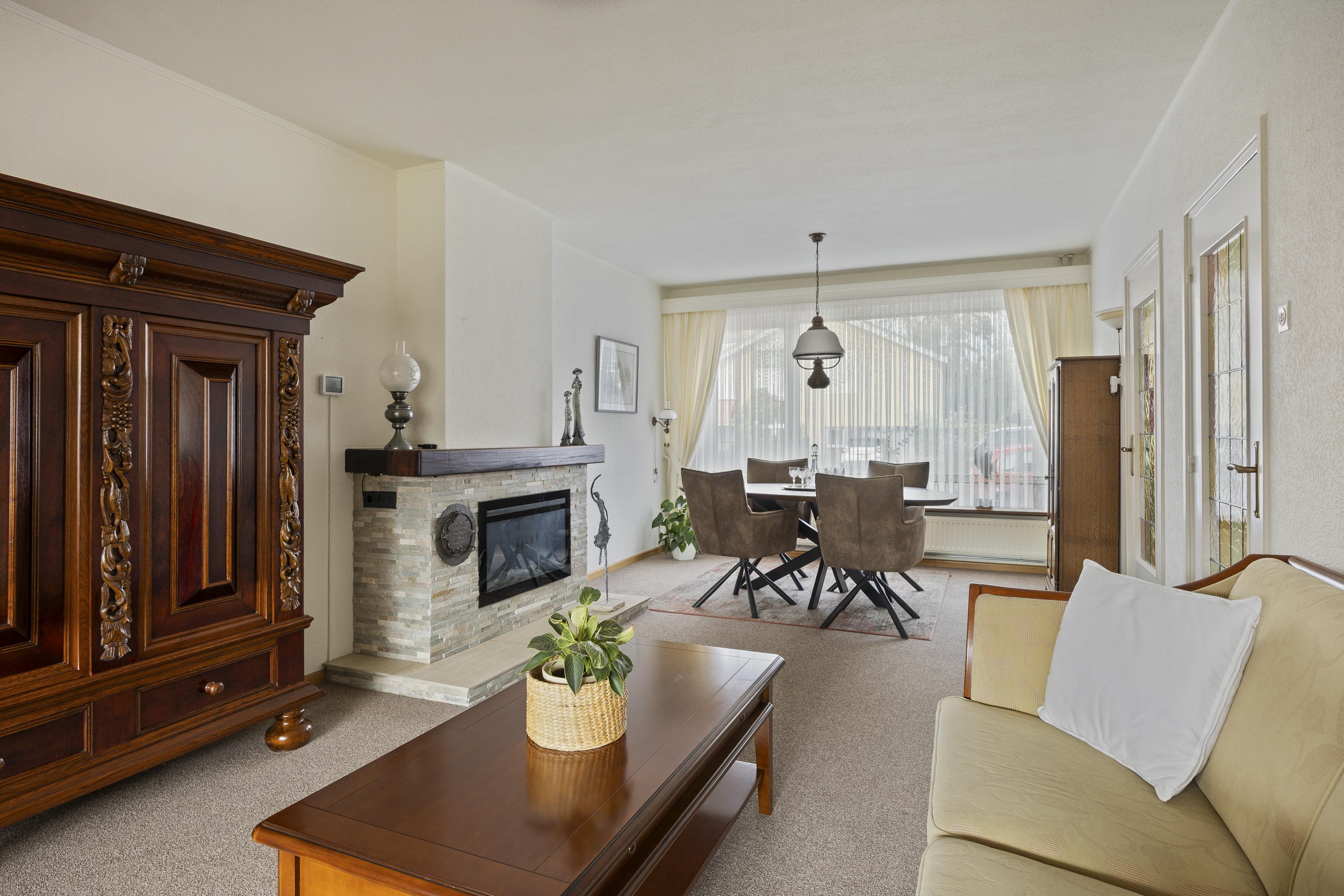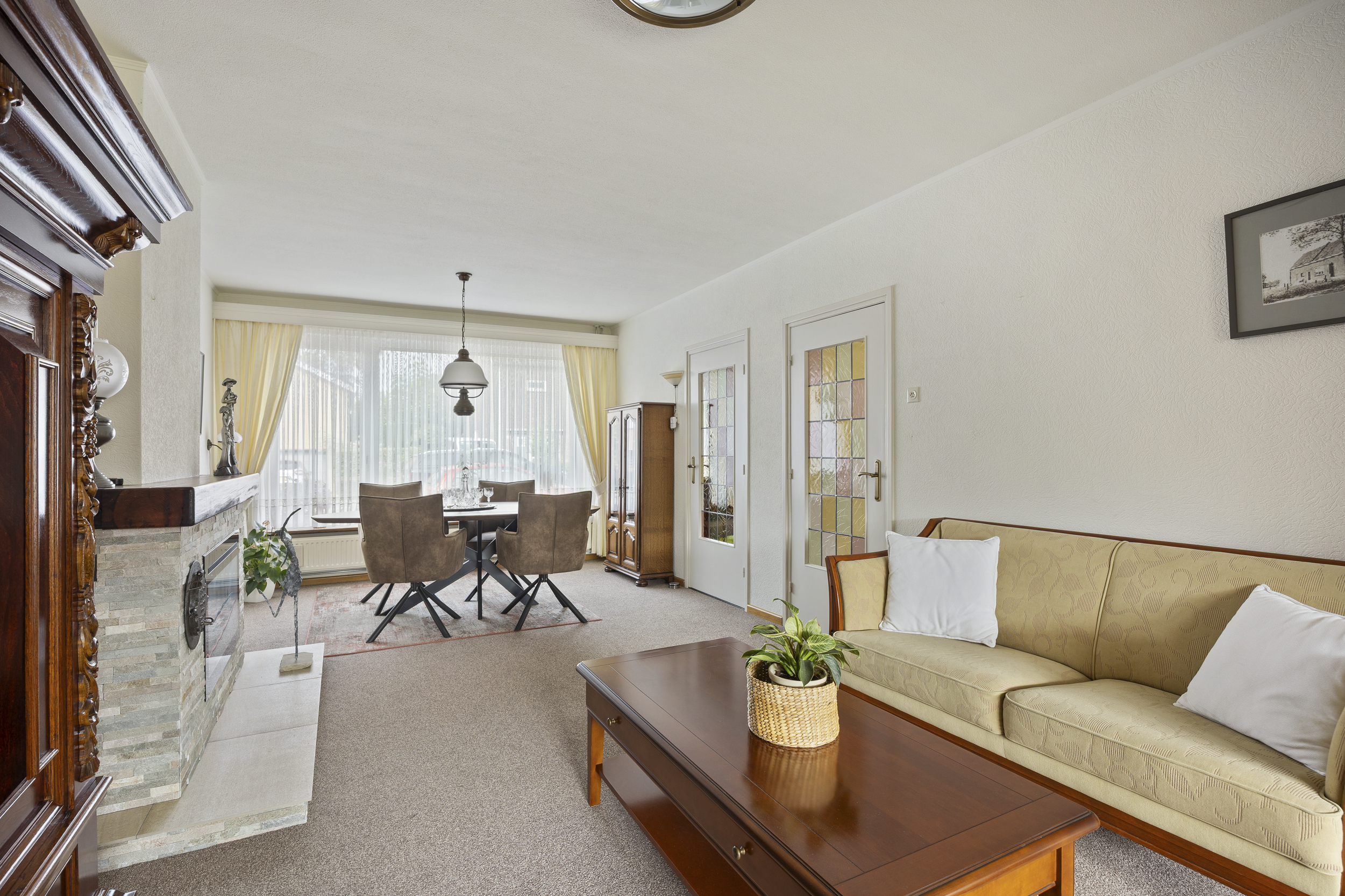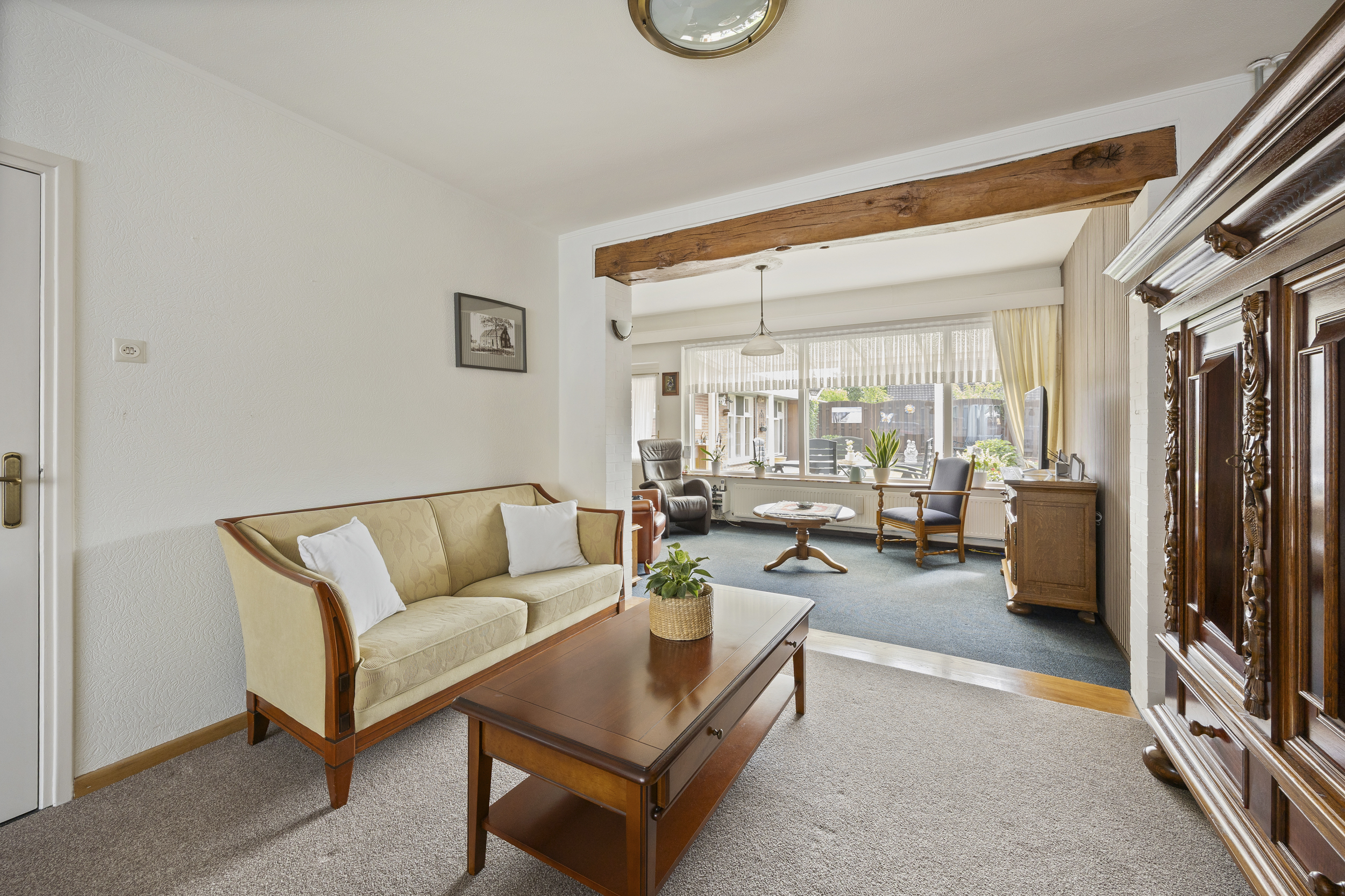• Woonkamer: De royale & sfeervolle woonkamer met aangebouwde tuinkamer (44m²) is voorzien van een gezellige