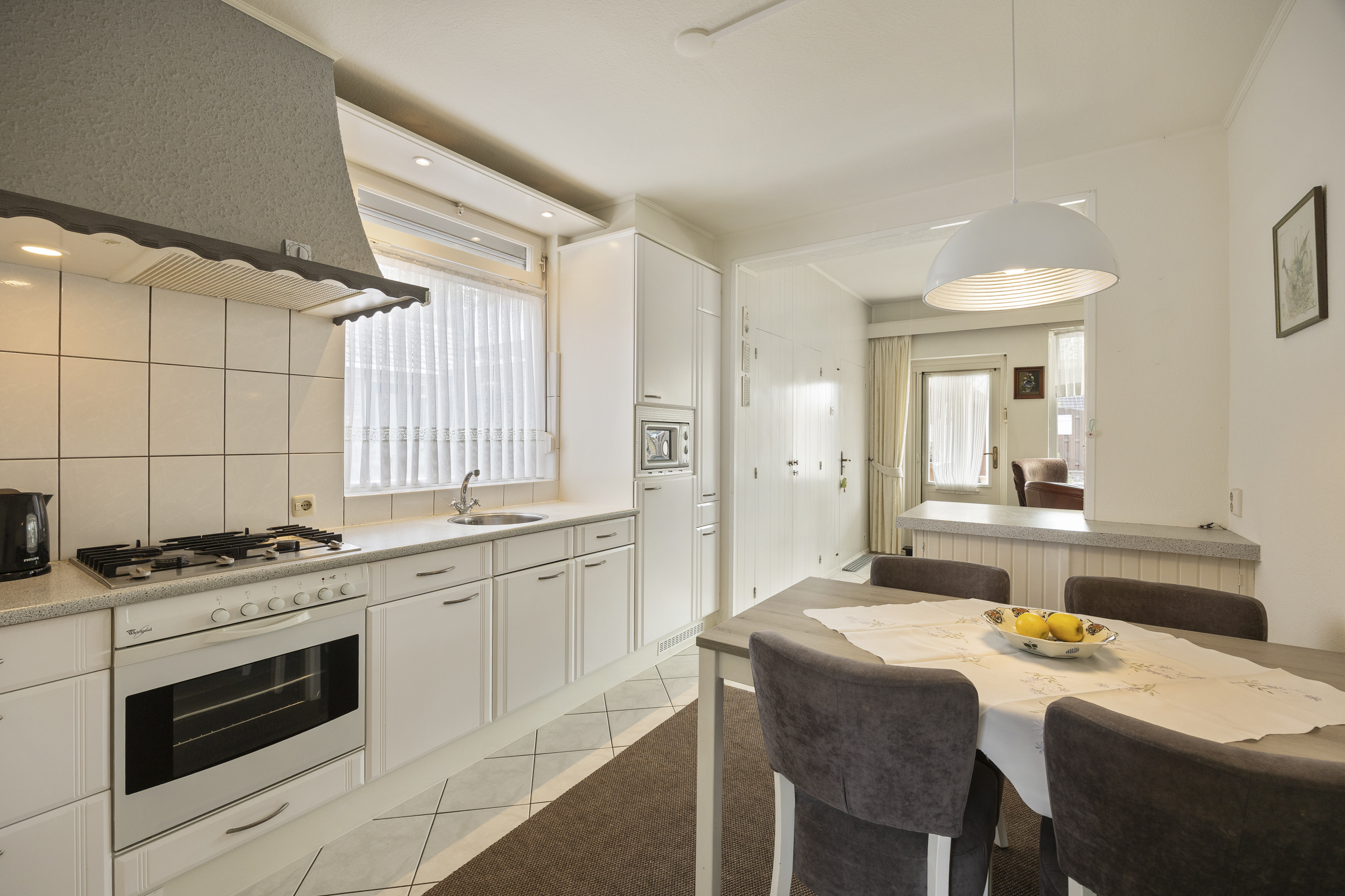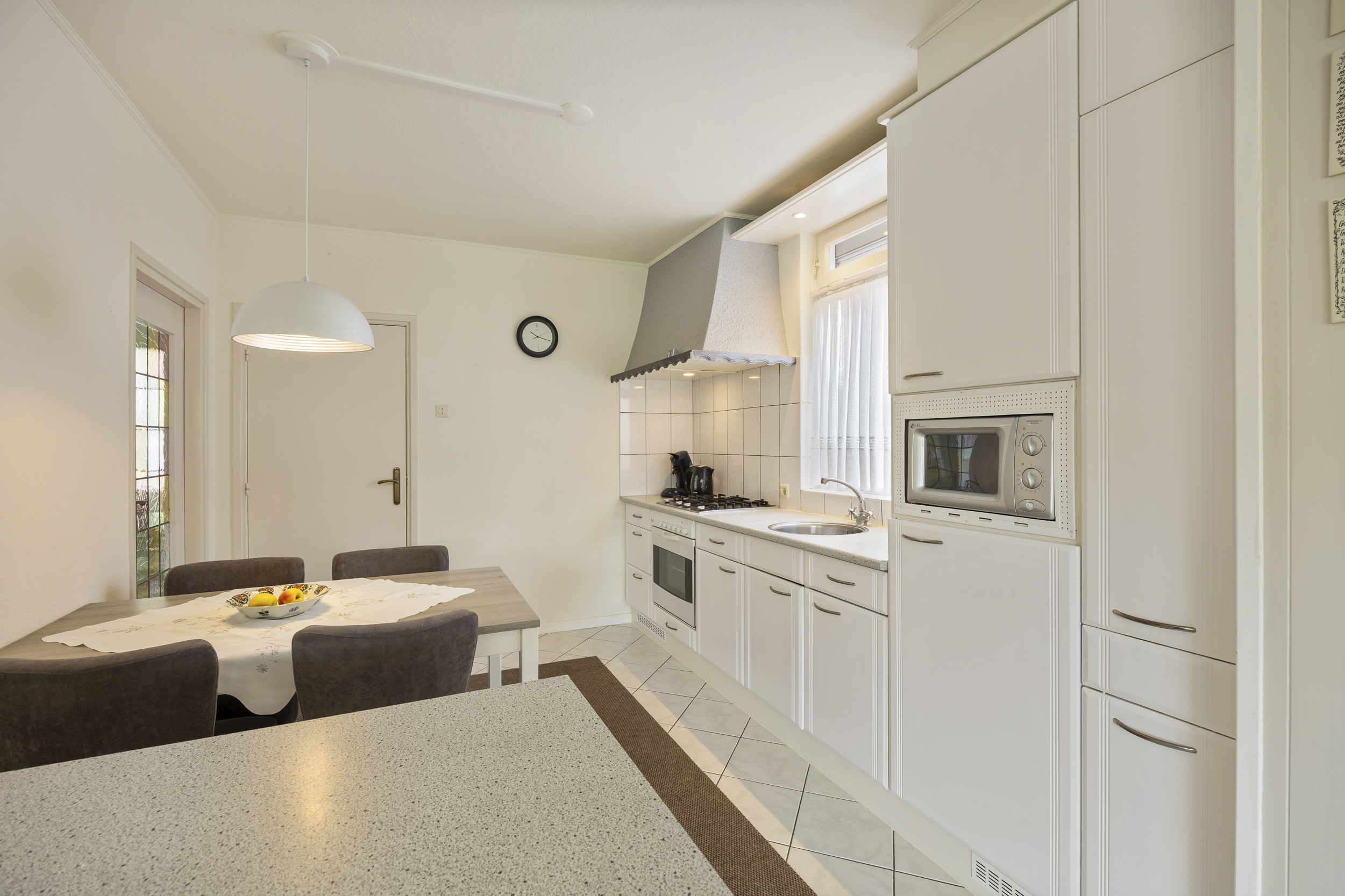 • Keuken: De halfopen keuken is goed verzorgd en voorzien van de volgende installatie; een