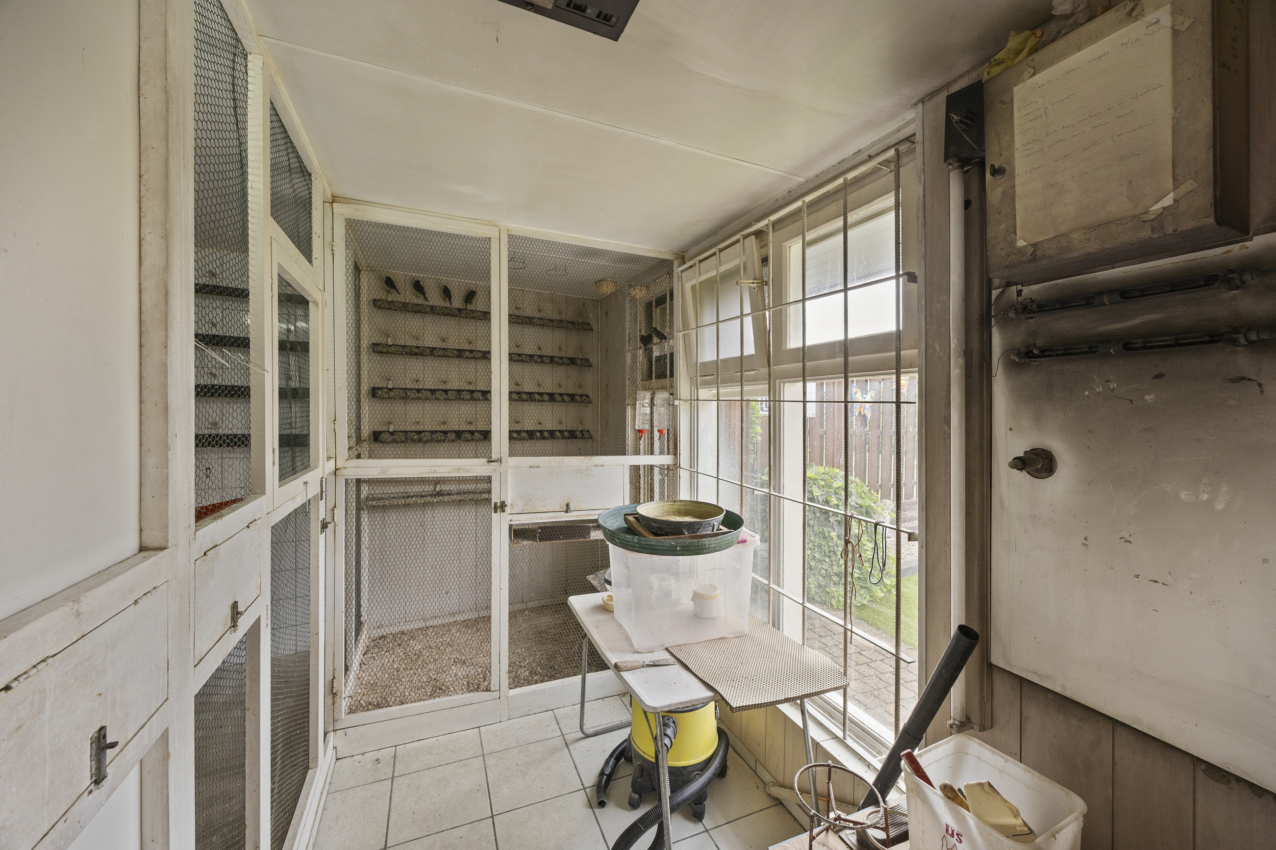 Een van de opvallende punten van deze woning zijn de inpandige bergruimtes met een totale oppervlakte van maar liefst 36m². De oprit biedt ruimte voor het parkeren van twee auto’s en toegang tot deze ruimtes. In eerste instantie de voormalige garage (12m²), welke is voorzien van handige bergkasten en een wastafel. Achtereenvolgens biedt de woning ruimte aan twee aanvullende berg-/ hobbyruimtes van respectievelijk 11m² en 13m². Ideaal voor wie op zoek is naar veel ruimte voor zijn hobby’s of kantoor of praktijk aan huis.