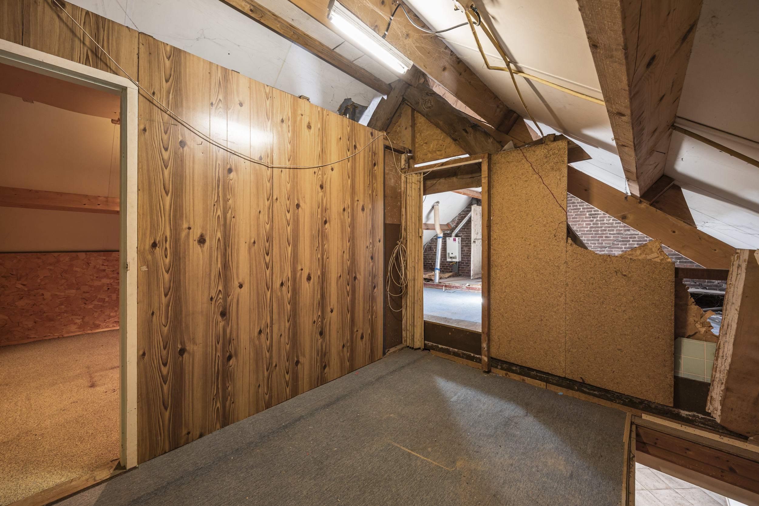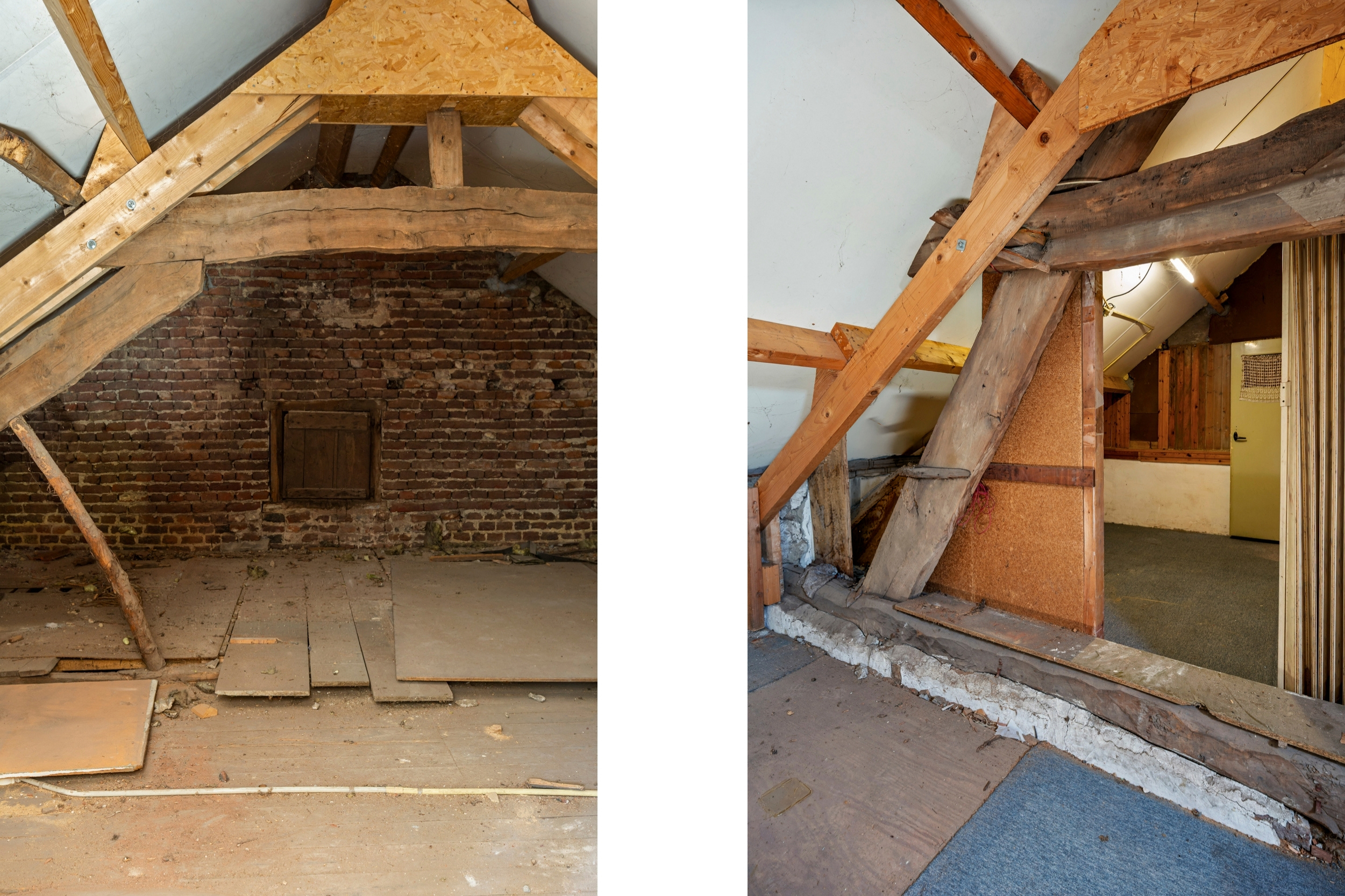 Dankzij het recent vernieuwde dak en de nieuwe constructie, gecombineerd met de behouden karakteristieke spanten, vormt deze verdieping een uitstekende basis voor het realiseren van meerdere (slaap)kamers, een studio of een open loftachtige ruimte.