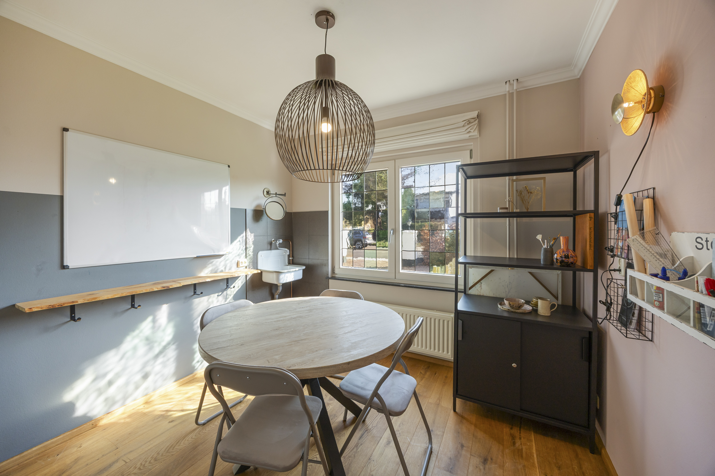 De royale woonkamer is zowel aan de achterzijde -als aan de linkerzijde uitgebreid met een mooie aanbouw. De circa 61m² grote ruimte ademt sfeer en karakter uit en staat in directe verbinding met de tuin en de keuken. Dankzij de royale en praktische maatvoering is deze ruimte flexibel in te delen: een gezellig zitgedeelte met prachtige schouw en open haard, een ruime eetkamer en fijne tuin/ TV-kamer. De grote raampartijen en openslaande deuren, waardoor het daglicht rijkelijk binnenvalt, zorgen voor een optimaal contact met- en toegang tot de tuin. Een heerlijke ruimte.
