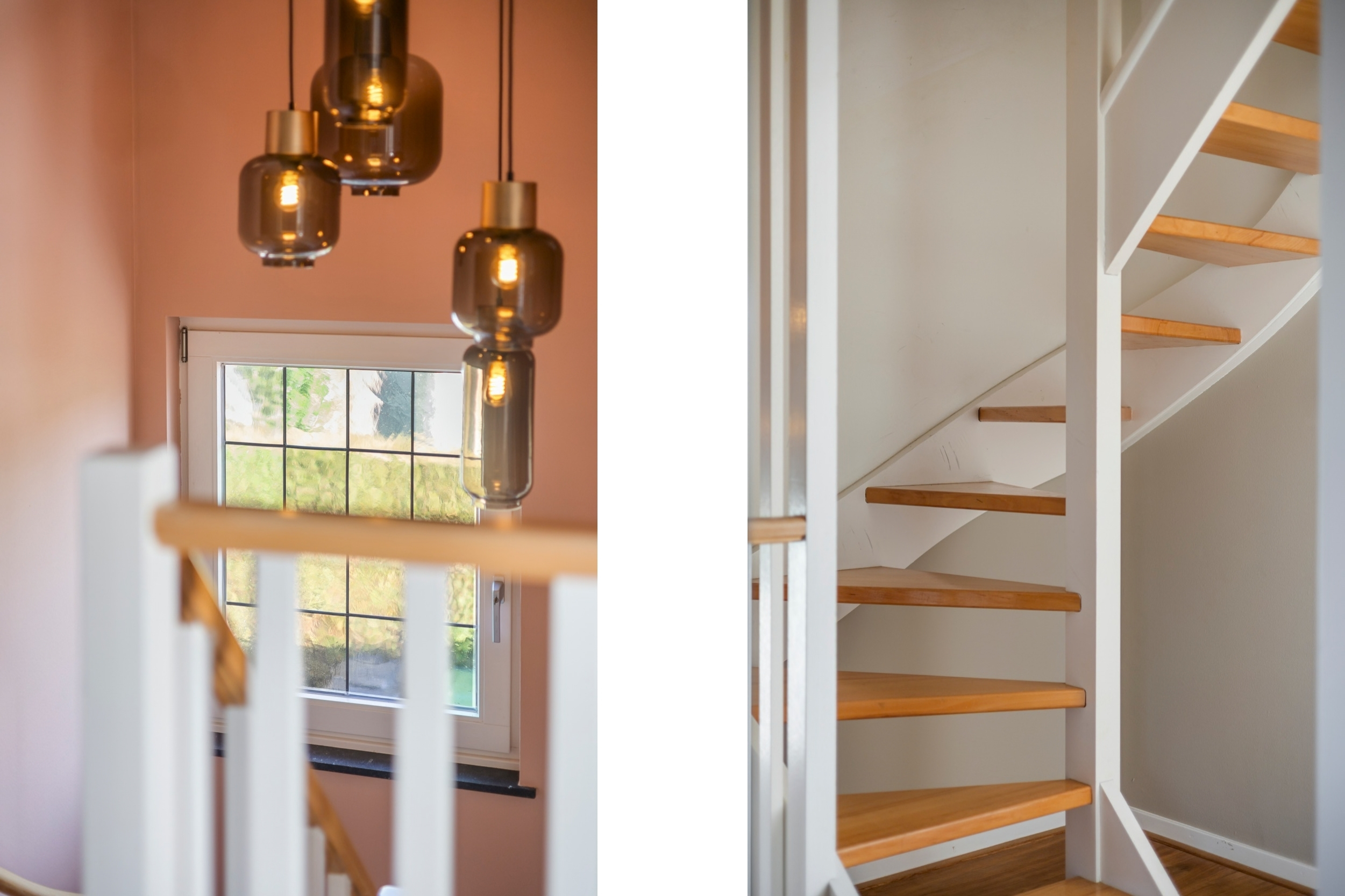 De overloop en slaapkamers zijn ook hier afgewerkt met een hoogwaardige eikenhouten parketvloer.