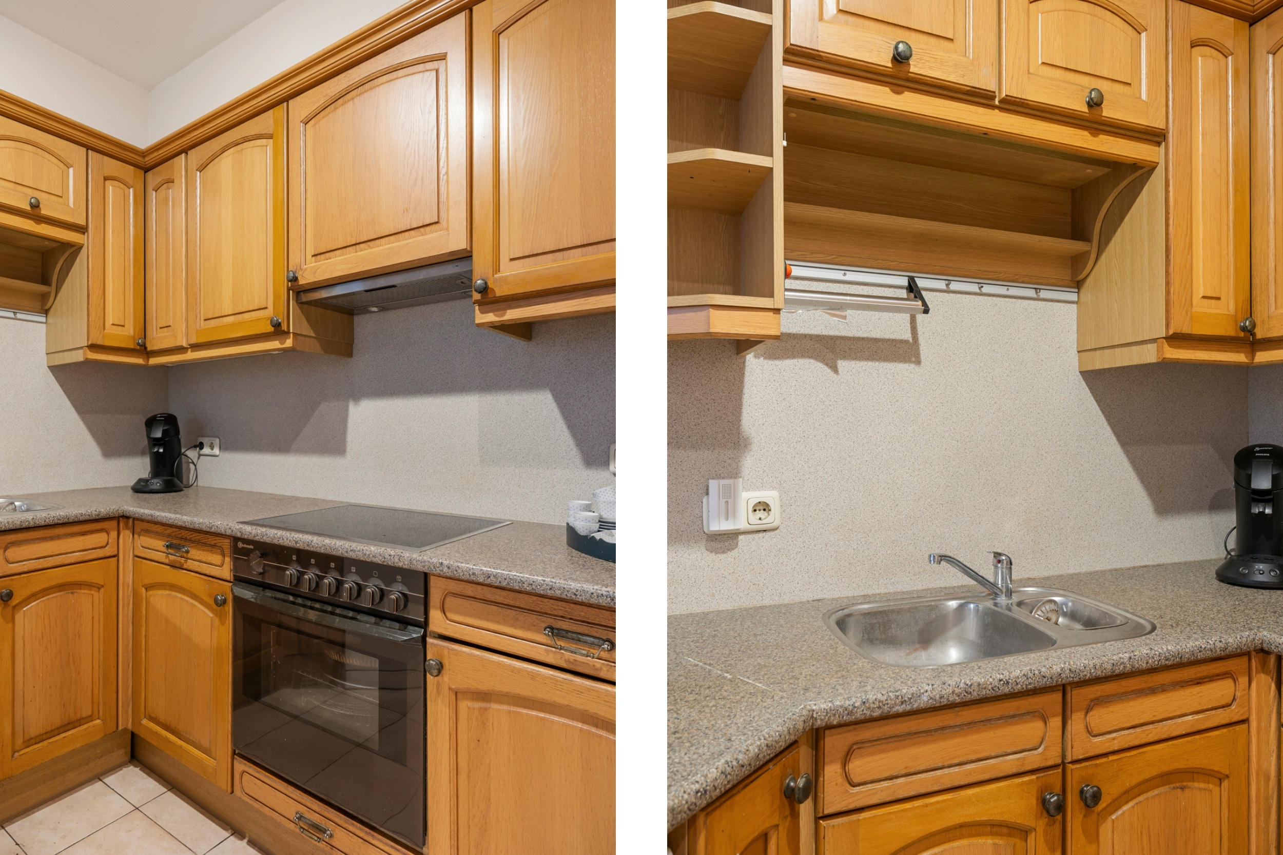 • Open keuken uitgerust met eikenhouten installatie met navolgende apparatuur: inductie kookplaat, afzuigkap,