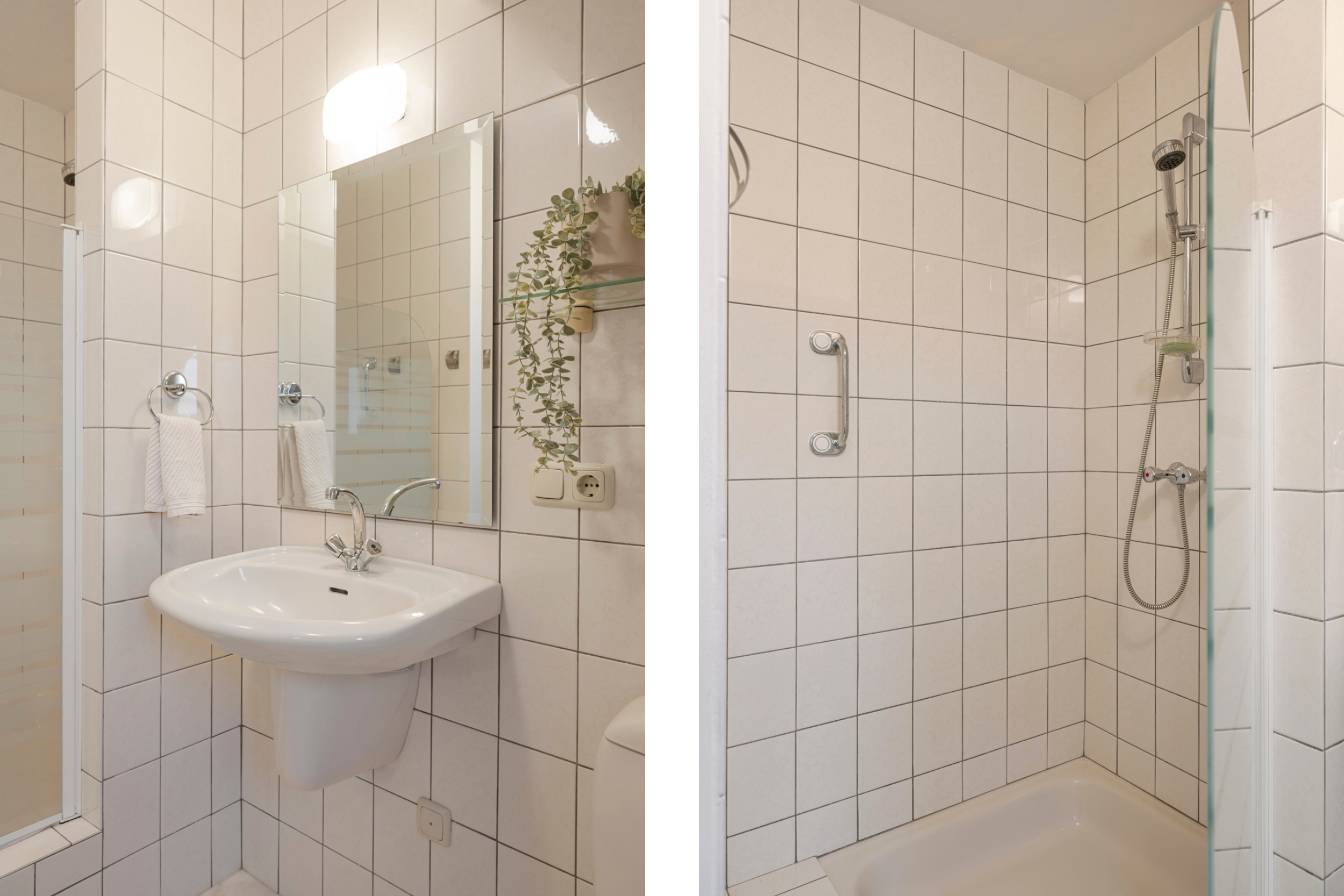 • Badkamer: neutraal afgewerkt, keurig verzorgd en voorzien van een fijne douche, toilet en wastafel.