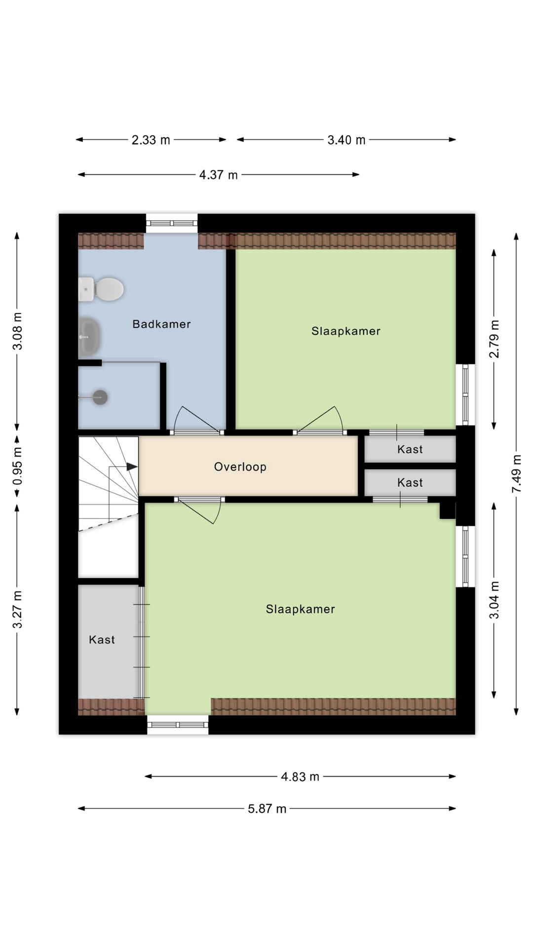 • Slaapkamer II: 340 x 279cm. met muurkast;