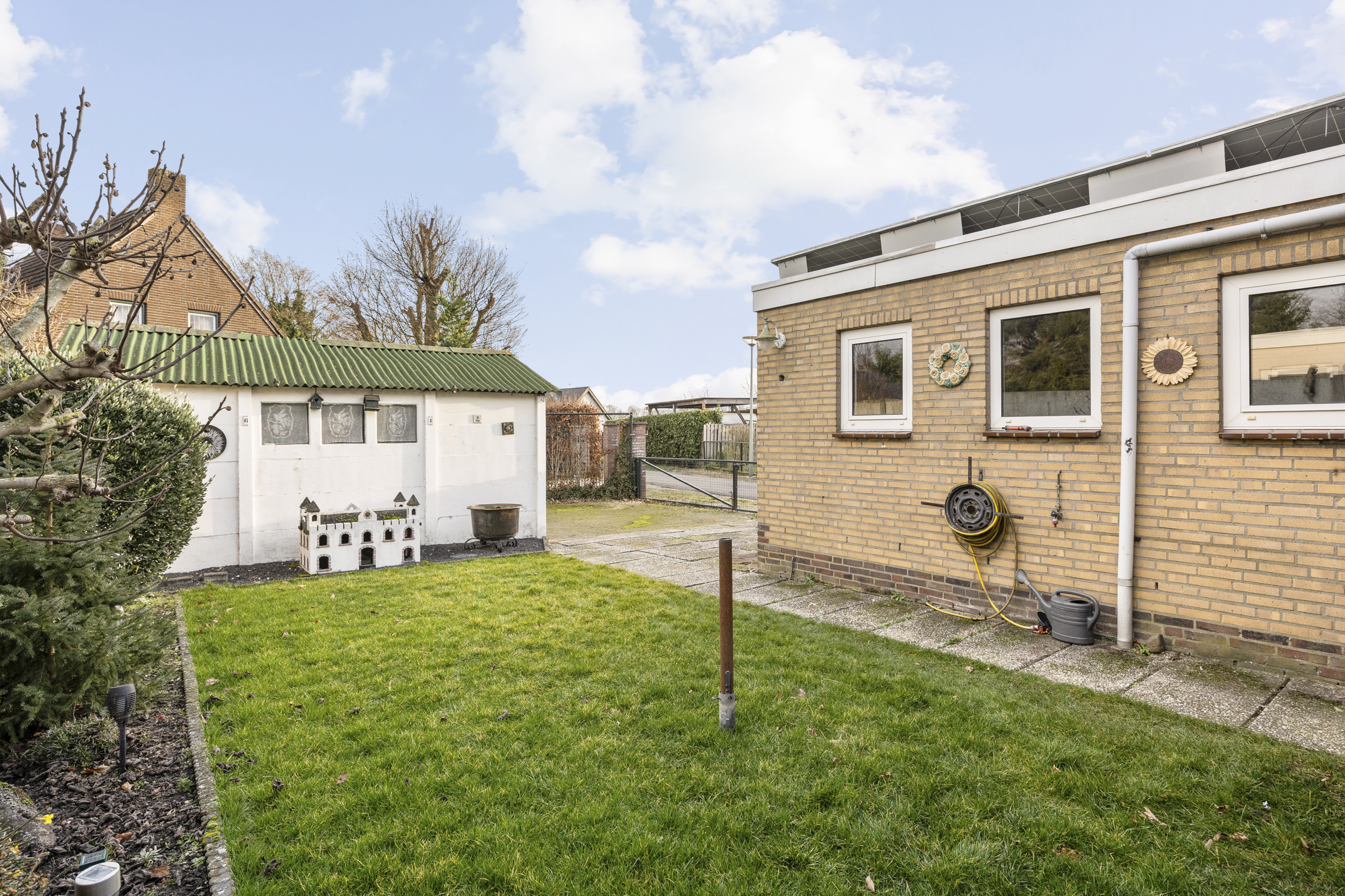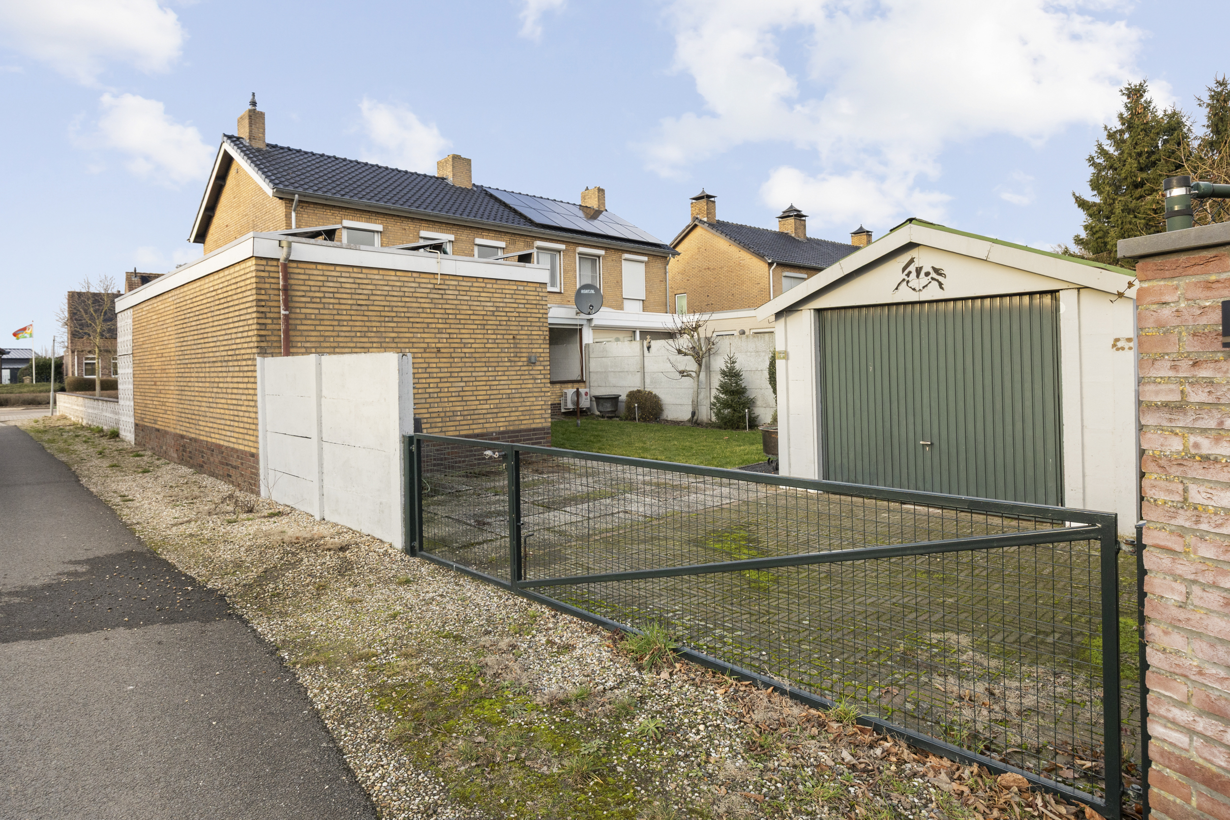 Aan de rechterzijde van het perceel bevindt zich een zijpad, waarmee ook de tweede vrijstaande garage/berging van 16 m² goed bereikbaar is. Ideaal als extra opslagruimte, hobbyruimte of voor het stallen van een tweede voertuig.