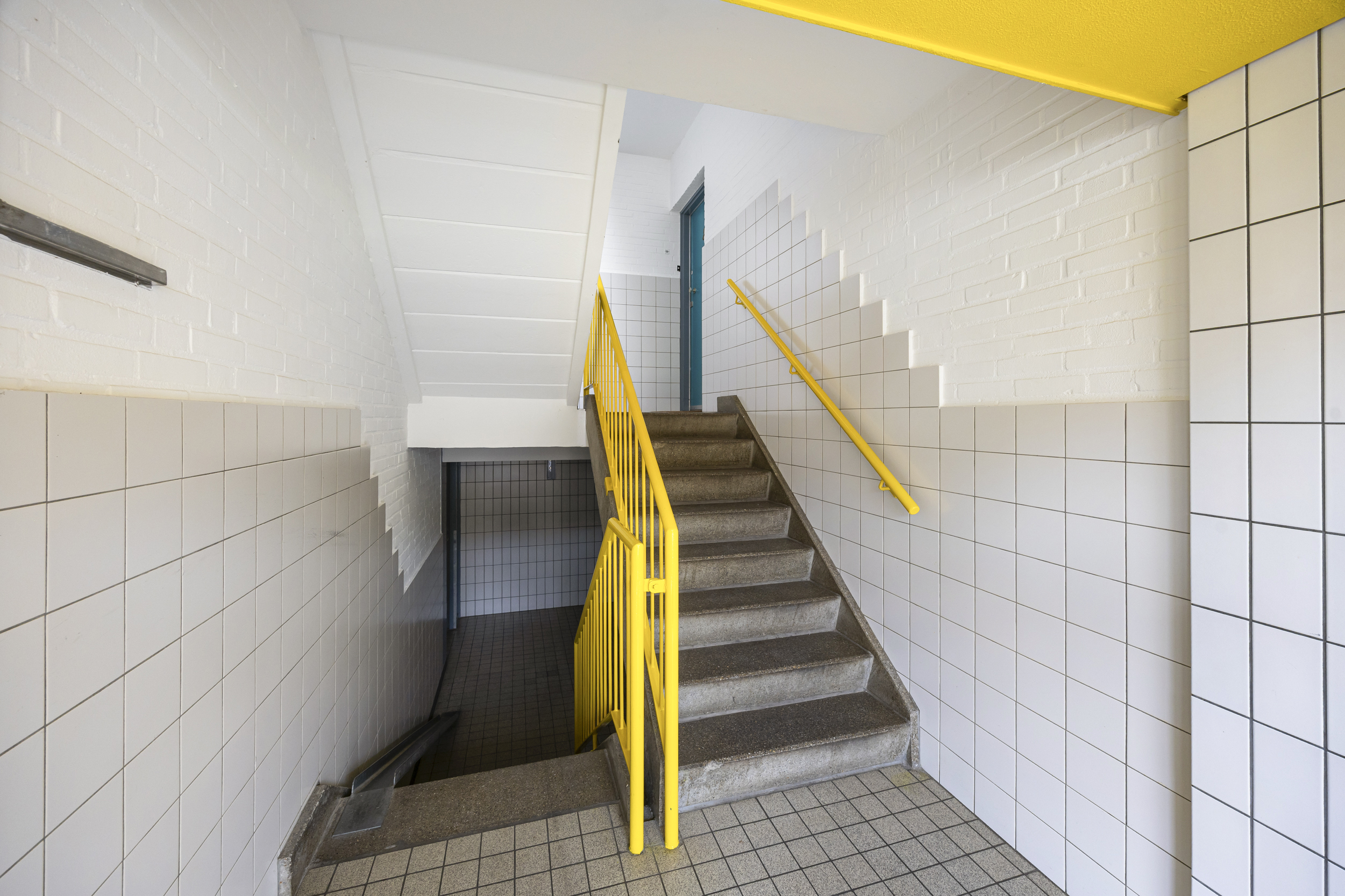 Centrale entree met brievenbussen en toegang tot het trappenhuis.