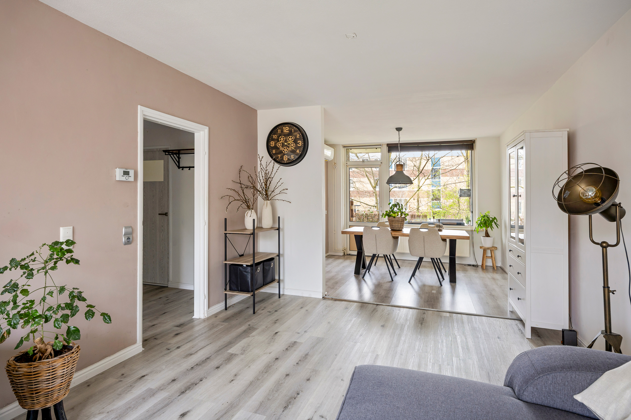 Via de ruime hal kom je het appartement binnen, waar direct het verzorgde en eigentijdse karakter opvalt. Vanuit deze centrale entree heb je toegang tot vrijwel alle vertrekken. Hier bevindt zich ook het modern afgewerkte toilet, dat in 2019 is vernieuwd en een strakke, luxe uitstraling heeft.
