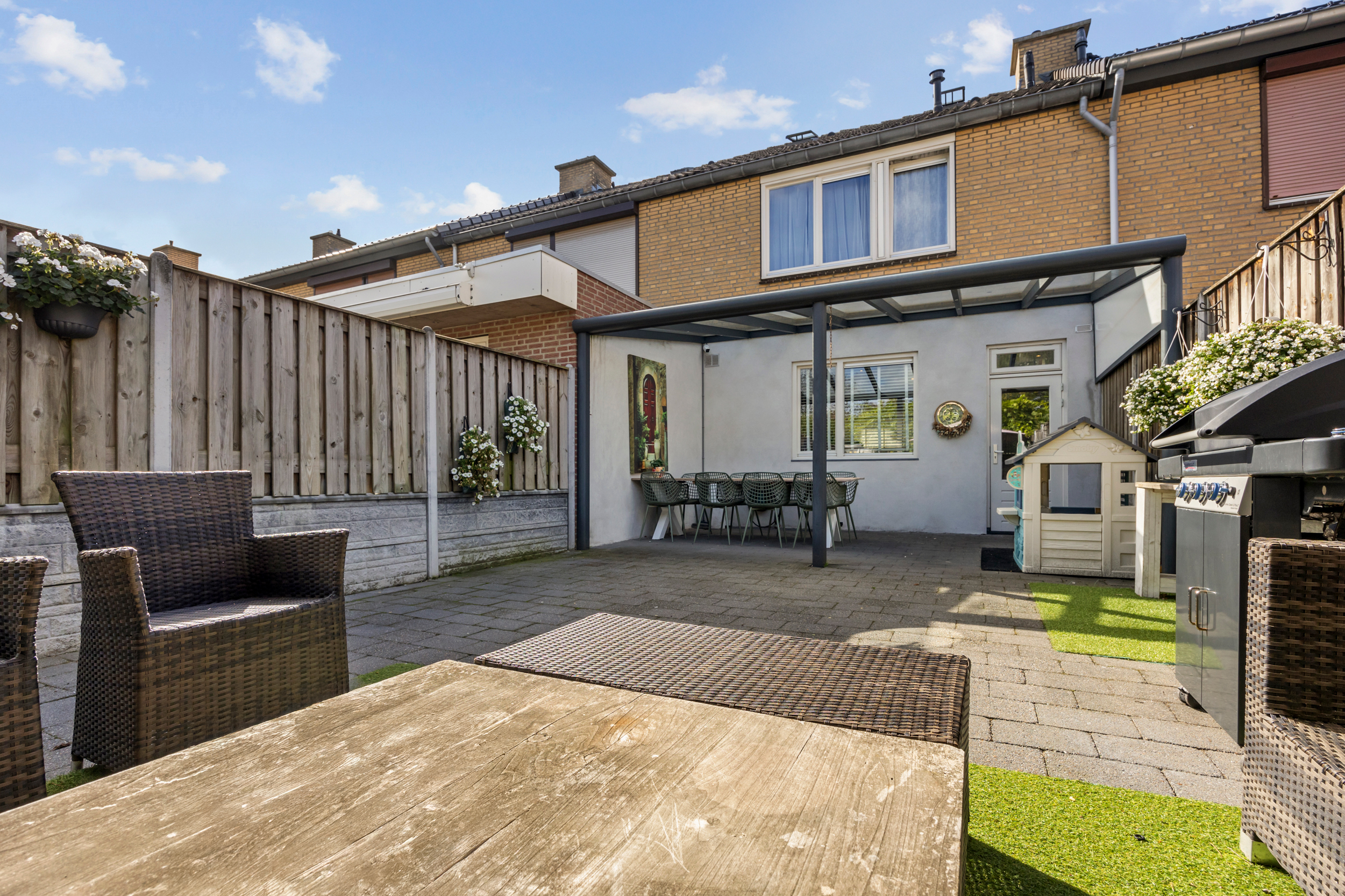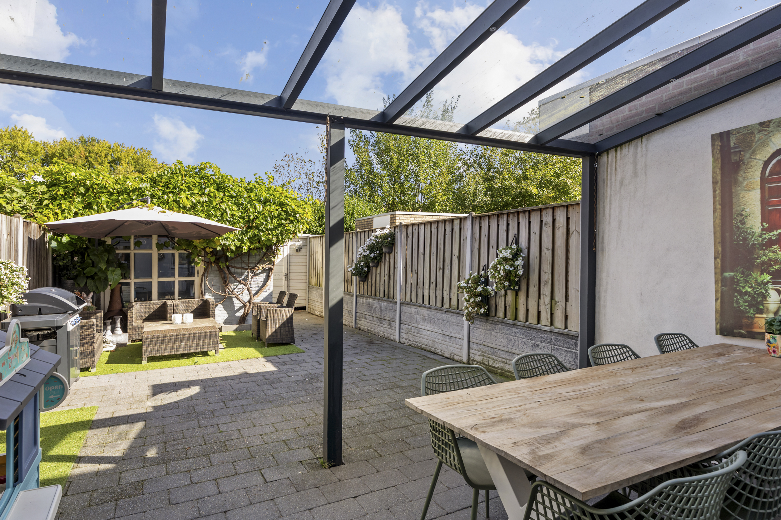 De achtertuin is ca. 13 meter diep en 5,5 meter breed, fraai en onderhoudsvriendelijk aangelegd. De aluminium overkapping van 18 m² met helder glas maakt dit tot een heerlijke plek om buiten te zitten – weer of geen weer. Dankzij de gunstige ligging en de besloten ligging geniet je hier van veel privacy. De tuin beschikt aanvullende over een ruime gemetselde berging. Achterom aanwezig voor extra gemak.