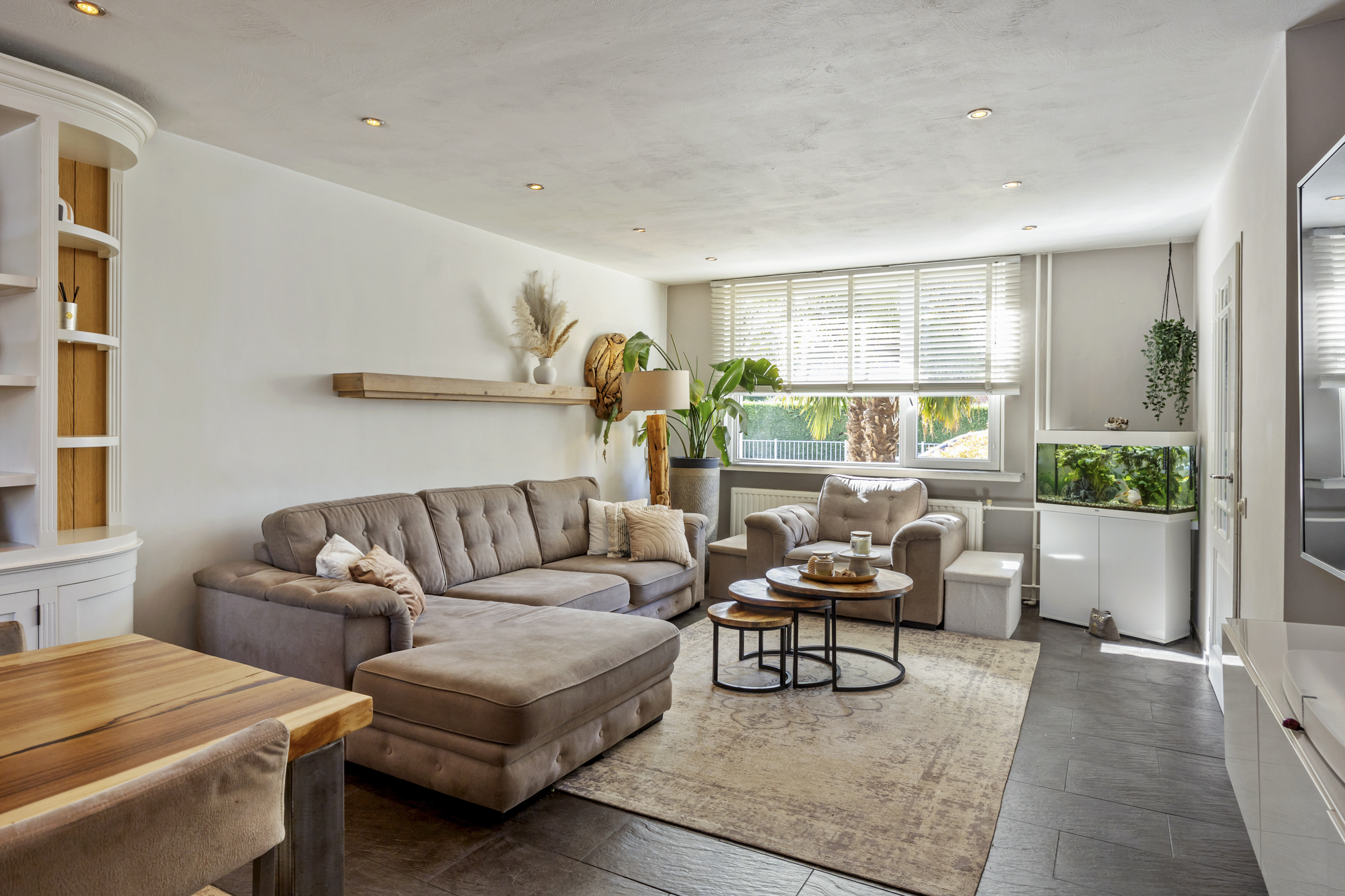Bij binnenkomst stap je in de hal met garderobe, vernieuwde meterkast en een praktische trap-/bergkast. Vanuit de hal loop je door naar de woonkamer. De woonkamer is licht en sfeervol, met een moderne antracietkleurige tegelvloer en grote ramen die zorgen voor een prettige lichtinval. Een fijne plek om tot rust te komen of gezellig samen te zijn.
