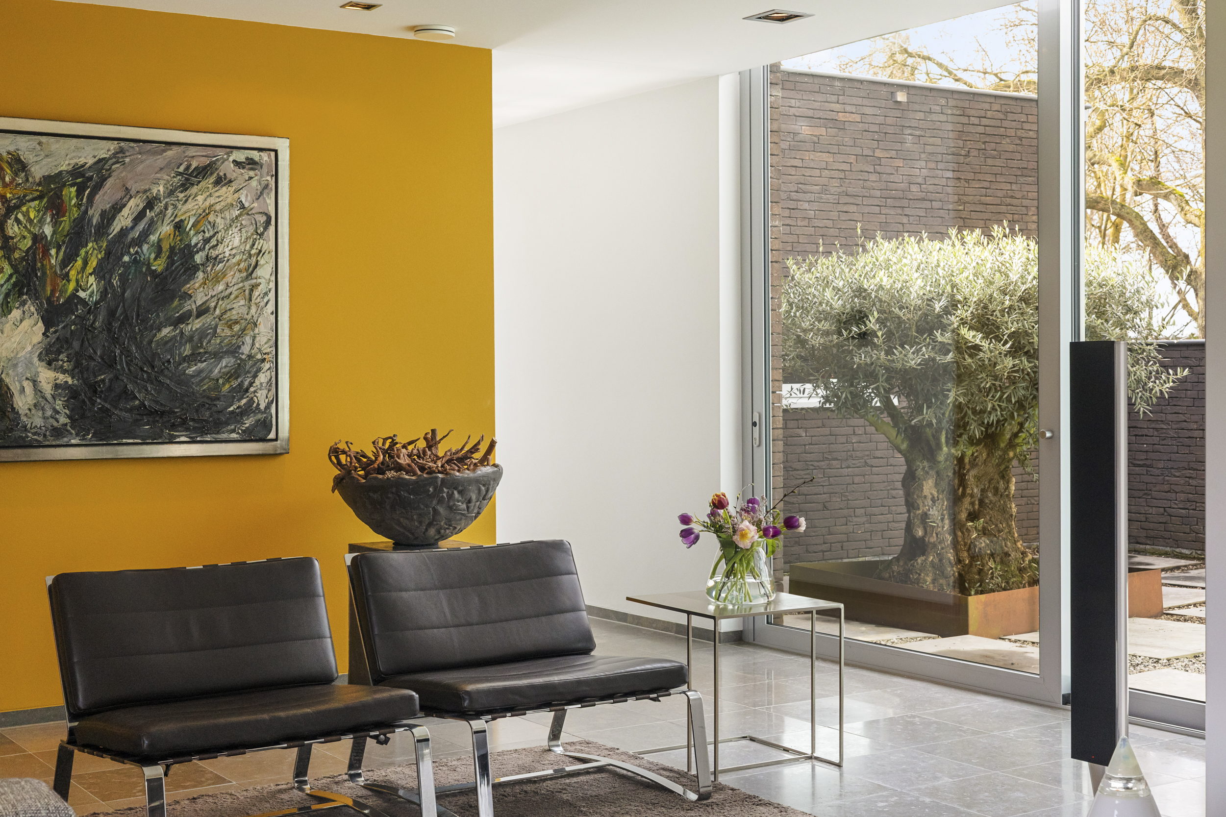 Het ontwerp is tot in detail doordacht en kenmerkt zich door indrukwekkende zichtassen, hoge glaspartijen en een subtiel spel tussen openheid en intimiteit. Binnen en buiten vloeien naadloos in elkaar over; het daglicht tekent gedurende de dag steeds nieuwe perspectieven in het interieur.