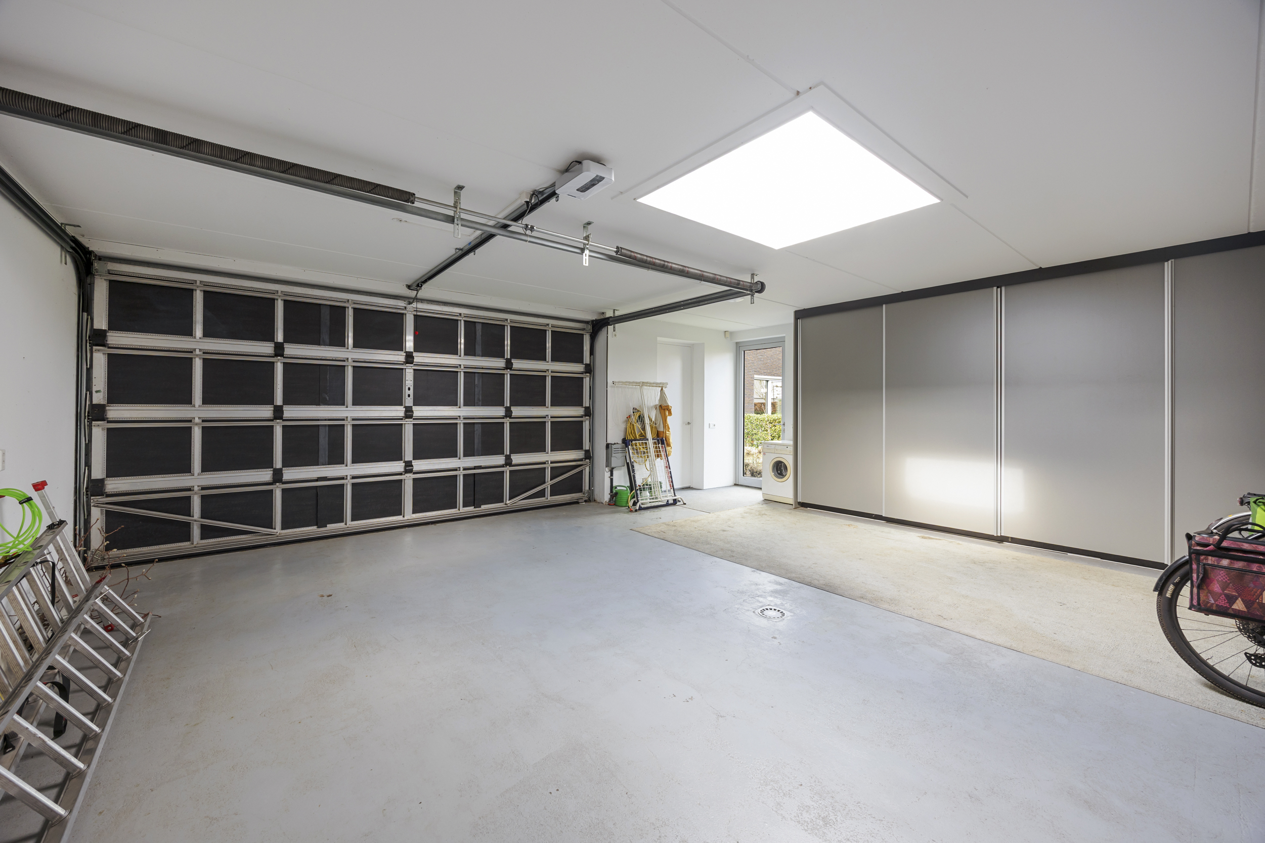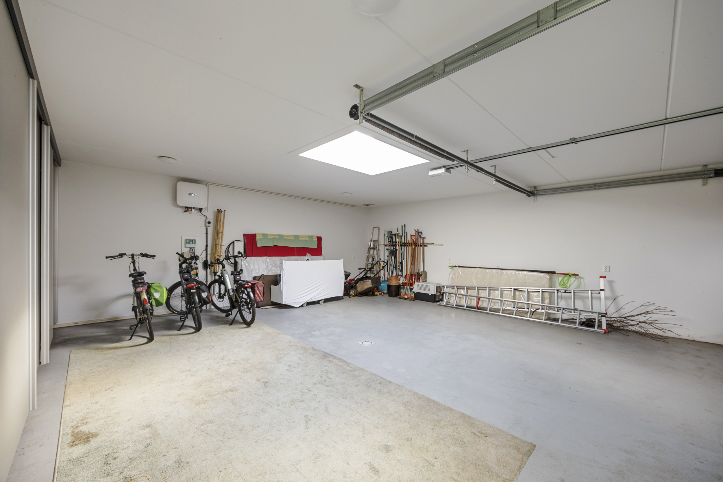 Via de royale oprit, voorzien van toegangspoort en parkeergelegenheid voor meerdere auto’s, bereikt u eenvoudig de inpandige garage. Deze is zeer ruim (ca. 55 m²) en beschikt over een elektrische sectionaalpoort, vaste kastenwand met spoelbak (warm en koud water) en een elektrische laadpaal.