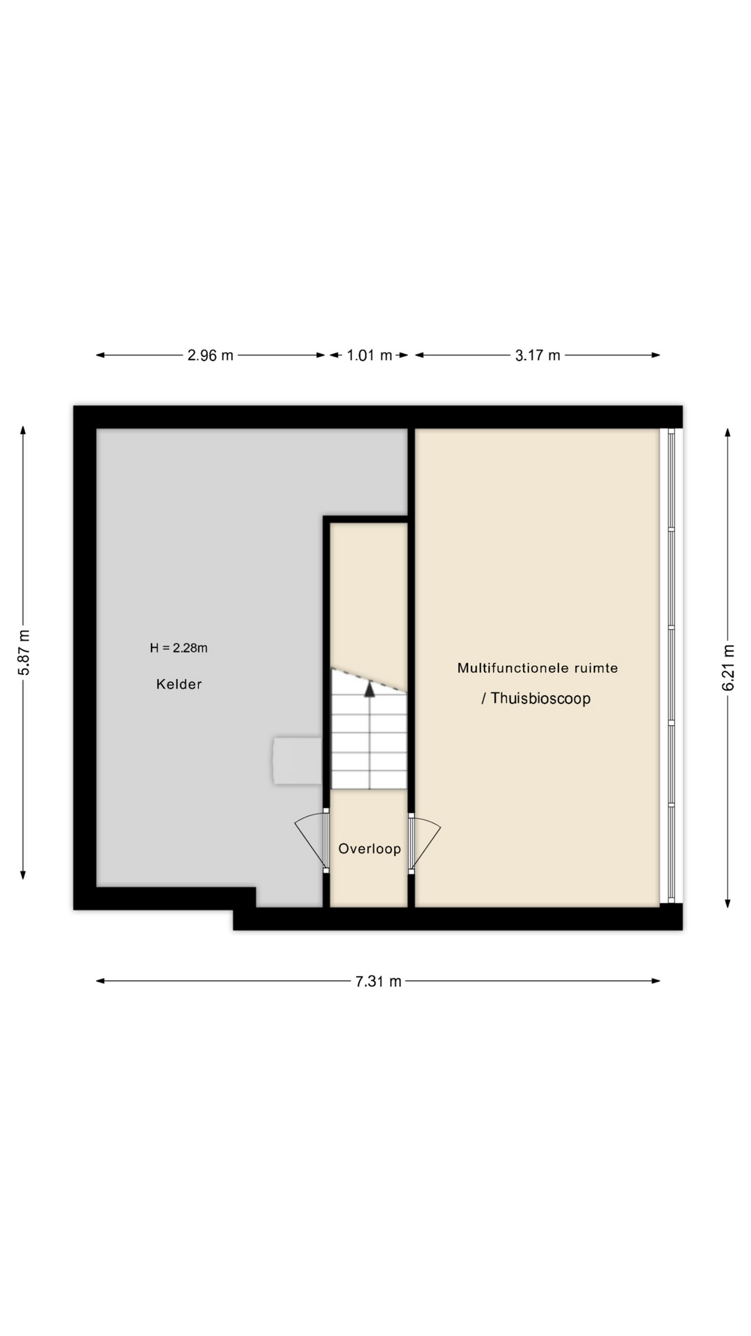 Het souterrain functioneert als een volwaardige verdieping dankzij de aanwezige daglichttoetreding en biedt diverse mogelijkheden: een extra slaapkamer, werk- of hobbyruimte, speelkamer of een thuisbioscoop (ca. 20 m²). Daarnaast zijn hier een technische ruimte en royale bergruimtes aanwezig, wat bijdraagt aan het praktische comfort van de woning.