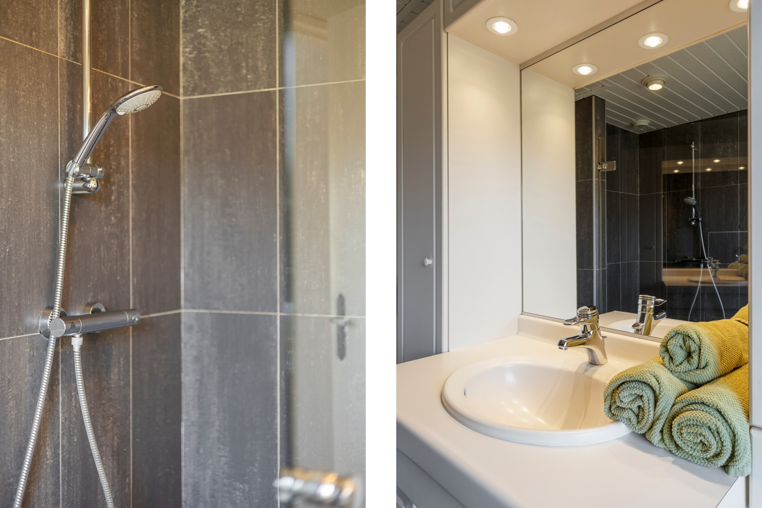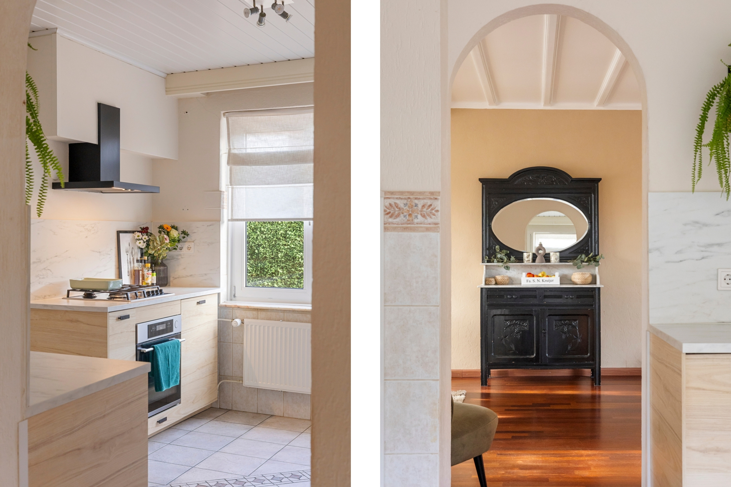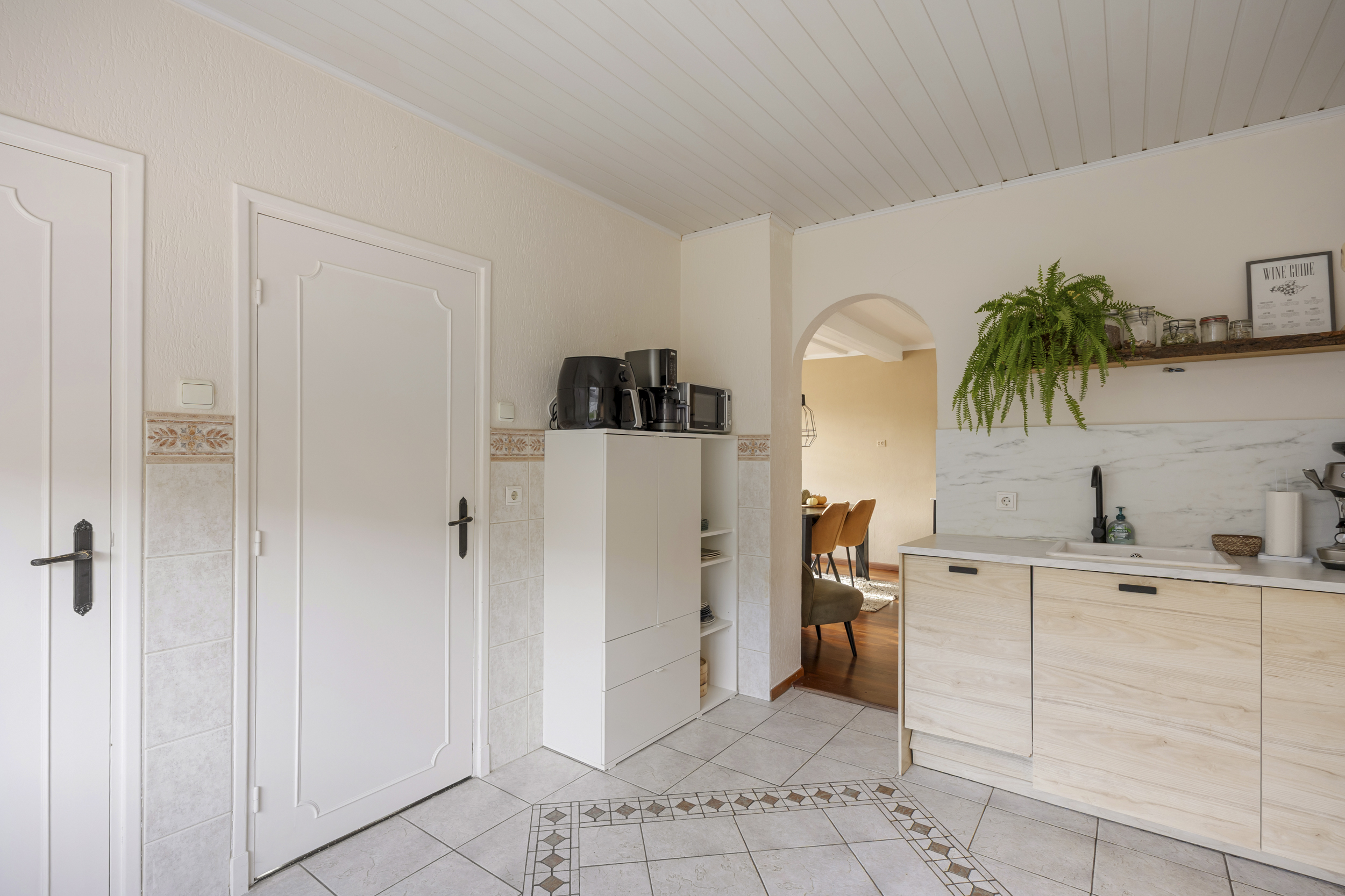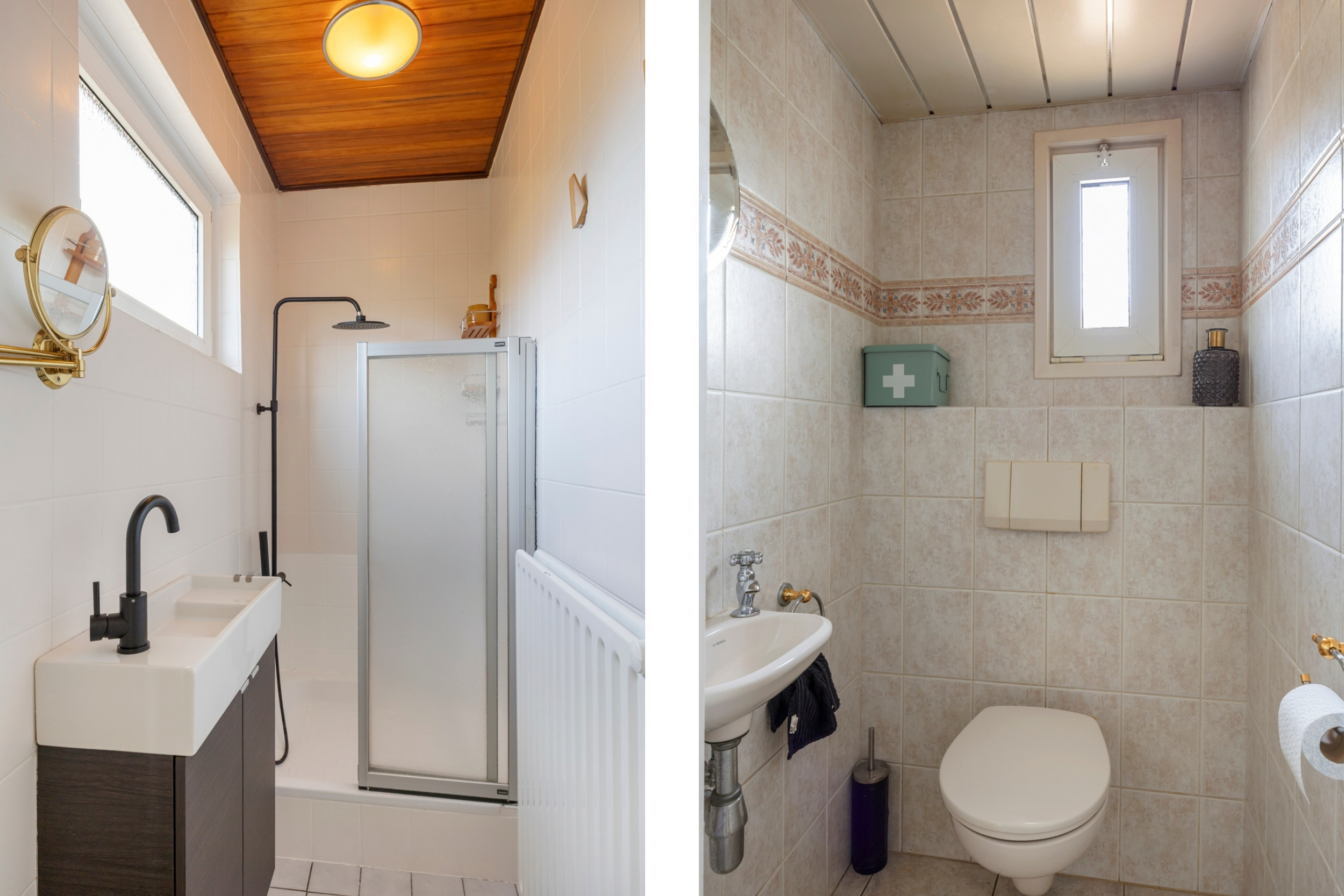 De eetkeuken is uitgerust met een moderne installatie (2019) incl. inbouwapparatuur zoals een gaskookplaat, oven, afzuigkap, koelkast en vaatwasser. Aangrenzend bevindt zich de praktische bijkeuken/ berging met modern toilet, aansluitpunten voor het witgoed, CV-opstelling (Remeha HR-combi, 2005) en veel bergruimte. Mooie verrassing is de 2e badkamer met fijne douche en wastafel.