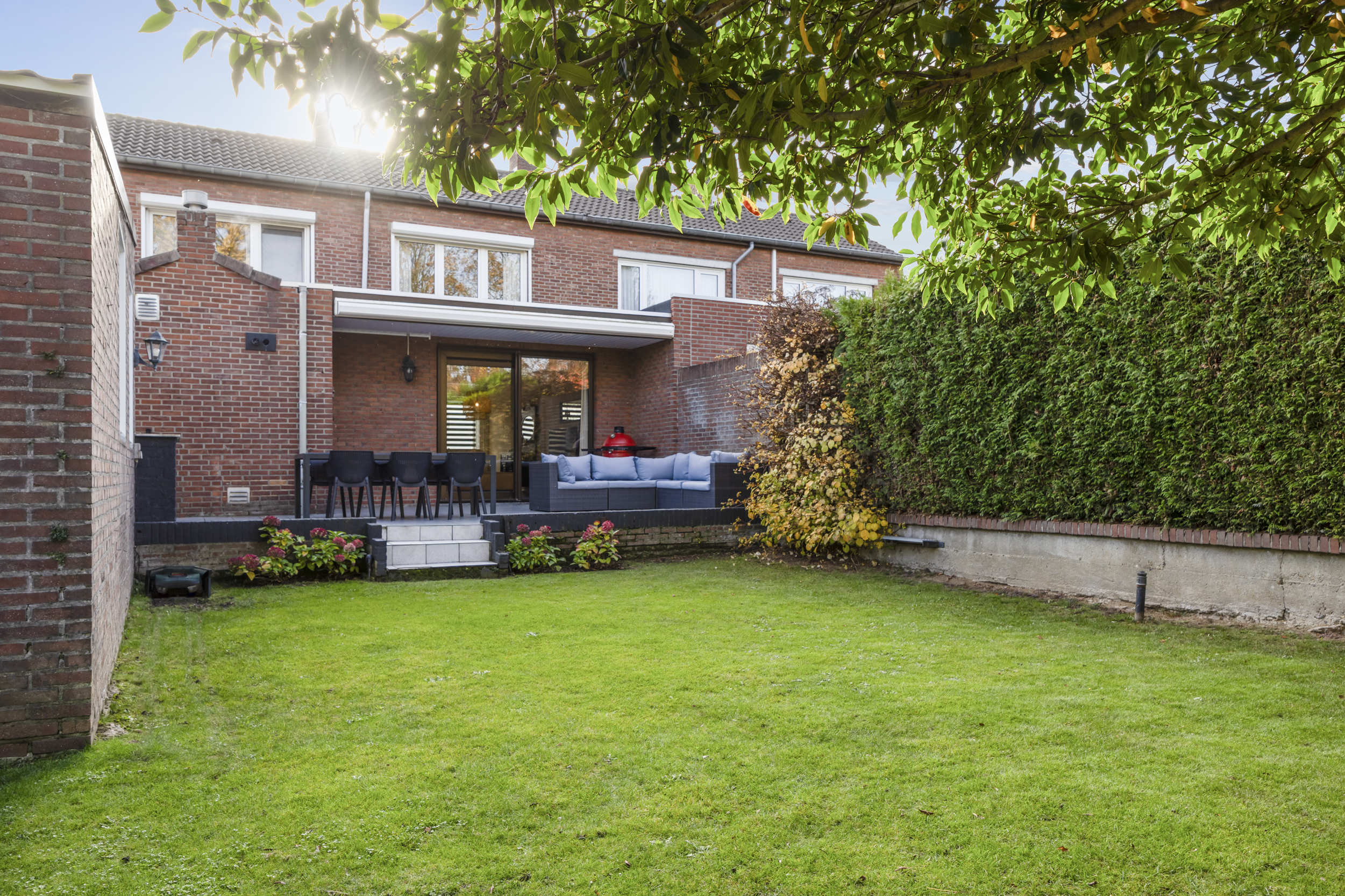 Achter de woning ligt een verrassend ruime en prachtige achtertuin met groot terras. Het grote terras is deels overdekten en voorzien van een mooie, elektrische zonneluifel. Hier kun je het hele jaar door genieten van het buitenleven, rust en privacy. De ligging en indeling maken de tuin onderhoudsvriendelijk, maar met veel groen, een prachtig boom en volwassen bomen op de achtergrond. Erg mooi en met een zeer goede privacy. Genoeg ruimte om lekker te ontspannen of zelfs een kleine moestuin.