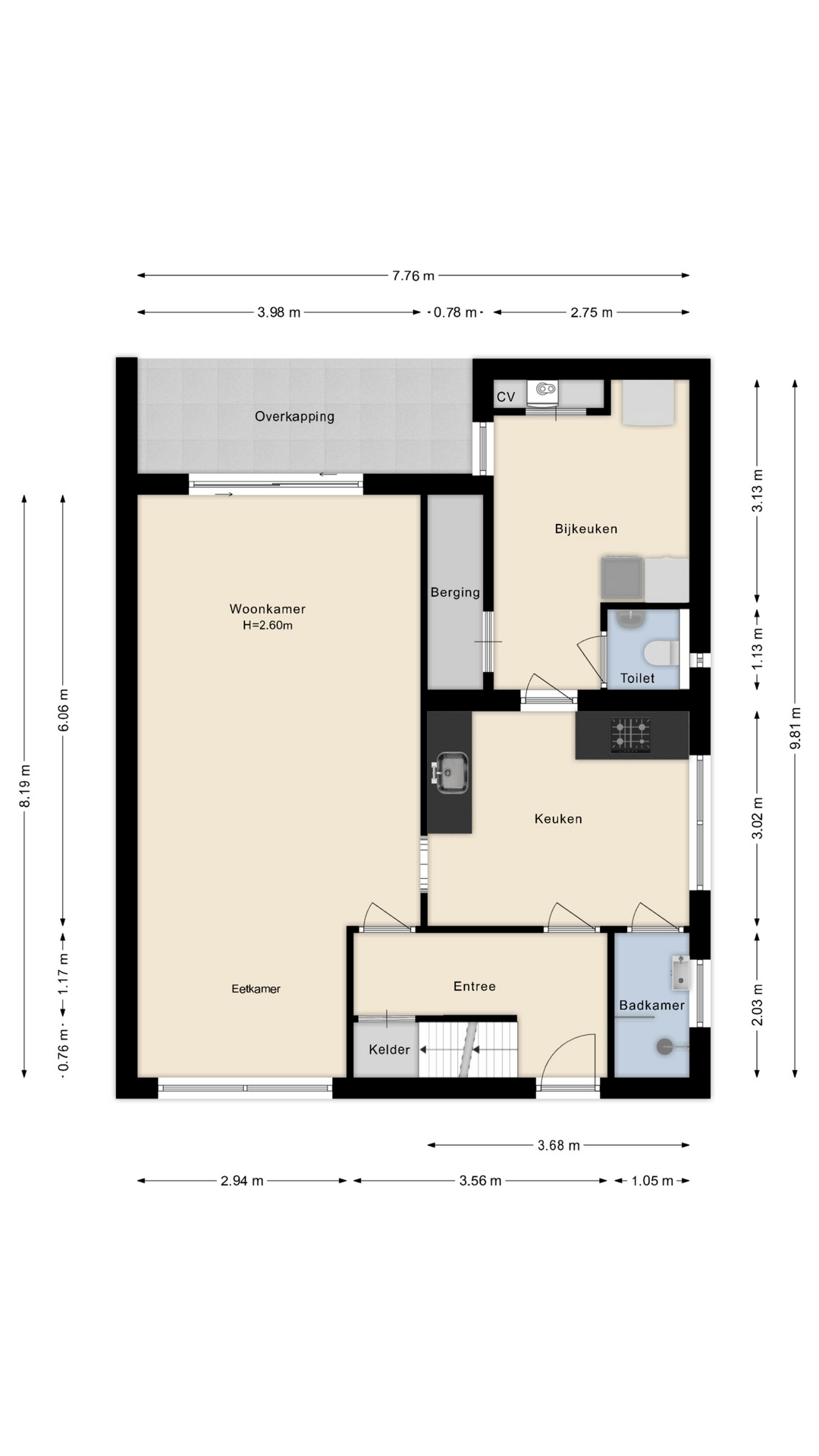 Bij aankomst valt meteen de ruime oprit op. Via de voordeur kom je binnen in de ruime ontvangsthal met meterkast, garderobe, trapopgang naar de eerste verdieping en toegang tot de kelder.