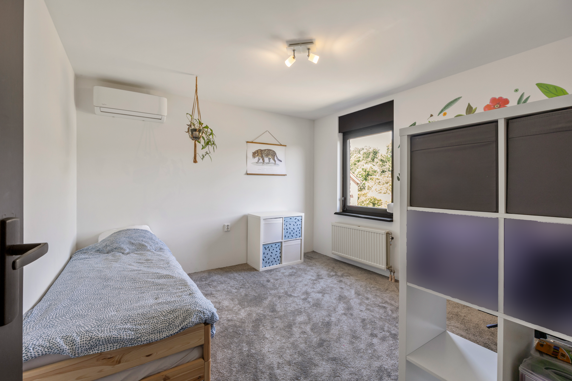 Via de vaste trap bereik je op de zolderverdieping, waar zich een vierde slaapkamer of hobbyruimte bevindt. Het grote Velux dakraam zorgt voor veel daglicht, en ook hier is een airco aanwezig voor optimaal comfort.